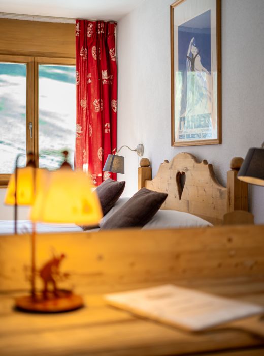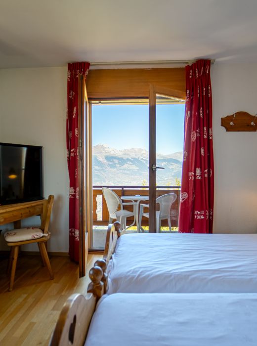 Nos 17 chambres tout confort, meublées et décorées dans le style chalet suisse font la part belle à la noblesse du bois et vous offrent, à choix, la vue sur les pistes et les sommets environnants ou sur l’immensité de la vallée du Rhône.